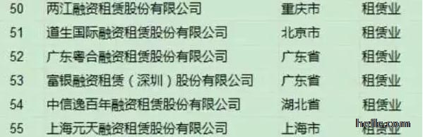 已在新三板掛牌融資租賃公司一覽:
